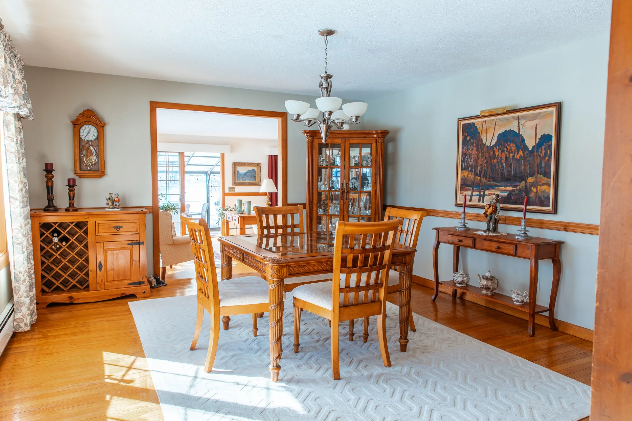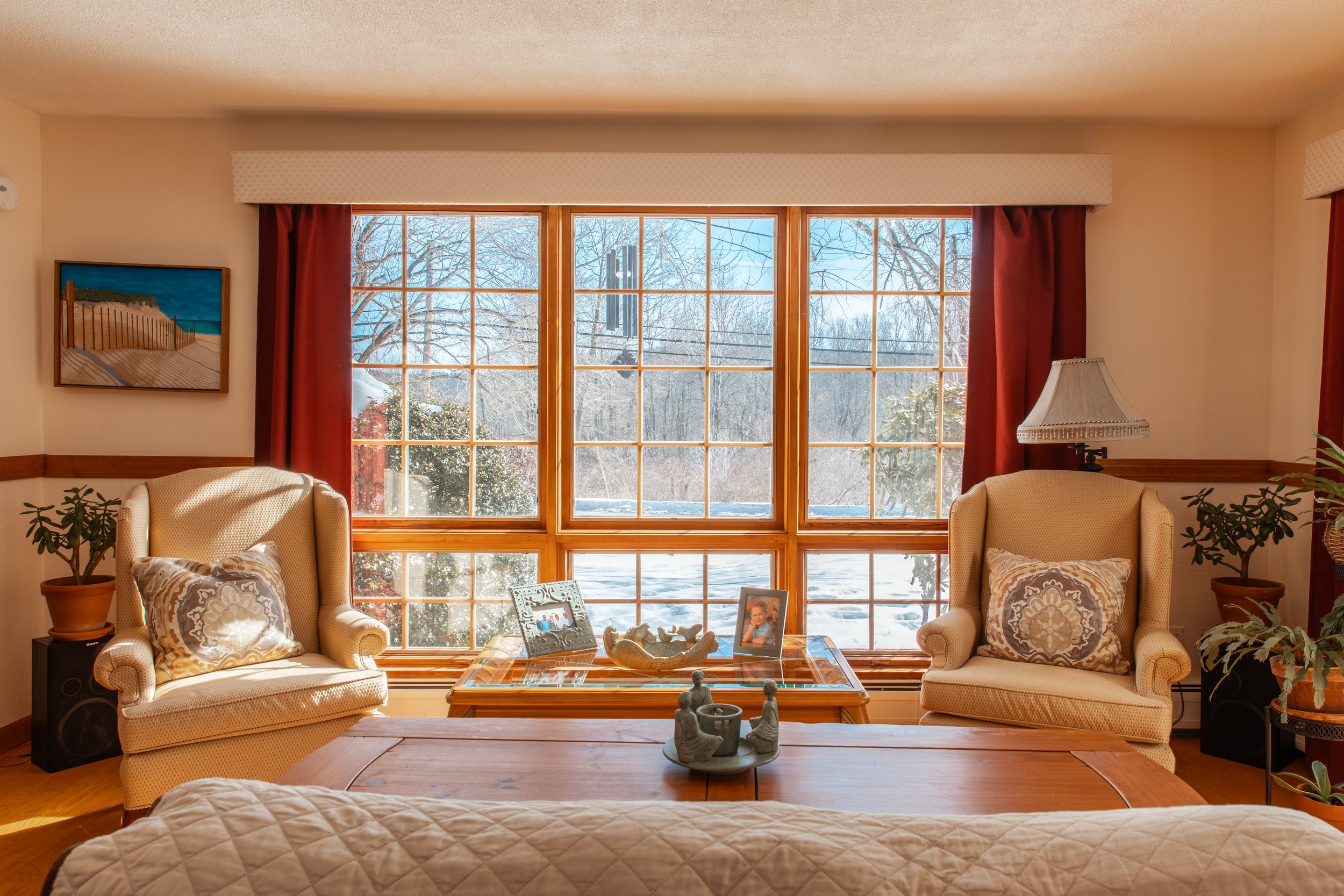 Walk on the trails in the backyard and enjoy the country views from your bay windows.